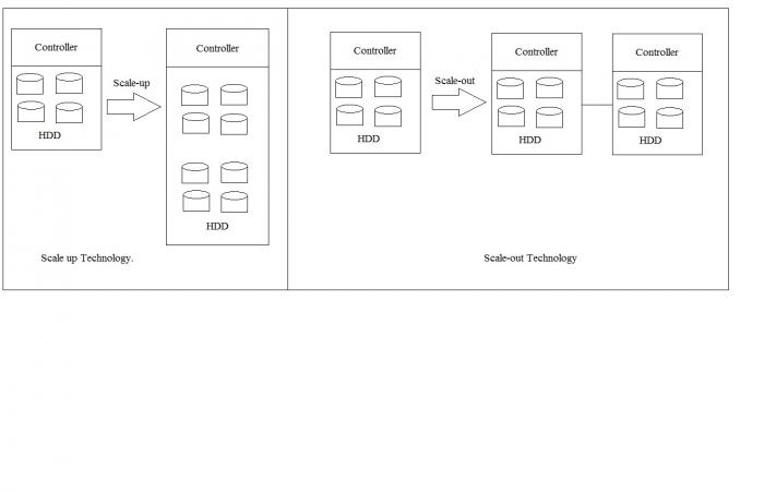 Scale-out technology adding more disk using existing controller would not be possible, were in order to expand desired disk storage one needs to add more controller in the existing environment.
